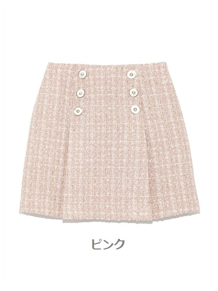前面に配したボタンがトラッドな雰囲気を醸し出す、ツイードスカートをつくりました。ウエストはタイトで、ボタン終わりからタックが入っているので、歩くたび裾が揺れて女性らしいムードに。コンパクトトップスやシャツなど合わせるものを選ばないのも優秀。