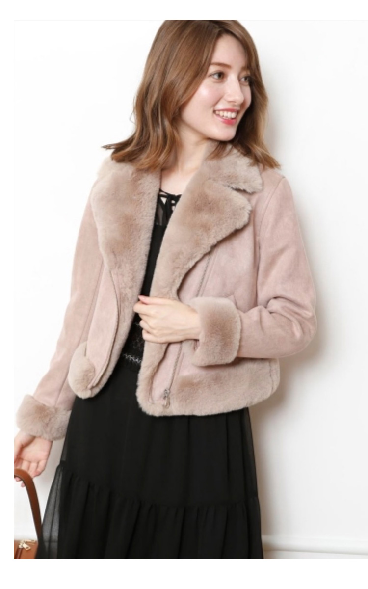 モコモコとしたフェイクファー使いに、シーズンムードが高まるライダースジャケット。女性らしいコンパクトサイズだから、ボリュームがありながらも着こなしはスマートに。スタイリングしやすいワントーンカラーも◎です。