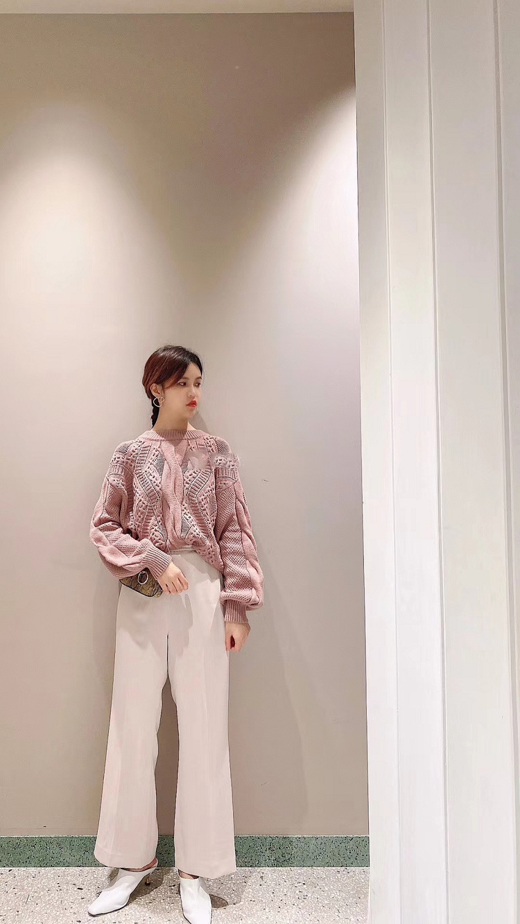 バックスタイルがポイントのケーブルニット。少し長めにボリュームを持たせた袖が女性らしく、柔らかな印象に。 素肌を見せてヘルシーに着こなしても、インナーにレースやシャツを重ねたレイヤードスタイルや、ハイウエストボトムとの合わせもおすすめです。 バックスタイルも含めアレンジが楽しめる遊び心ある一着です。