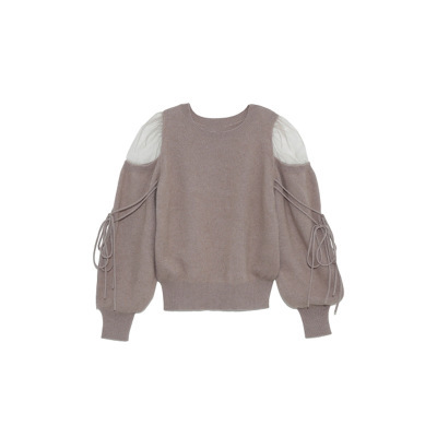 チュールで切り替えたシースルーショルダーが、フェミニンな装いへ誘うニットプルオーバー。