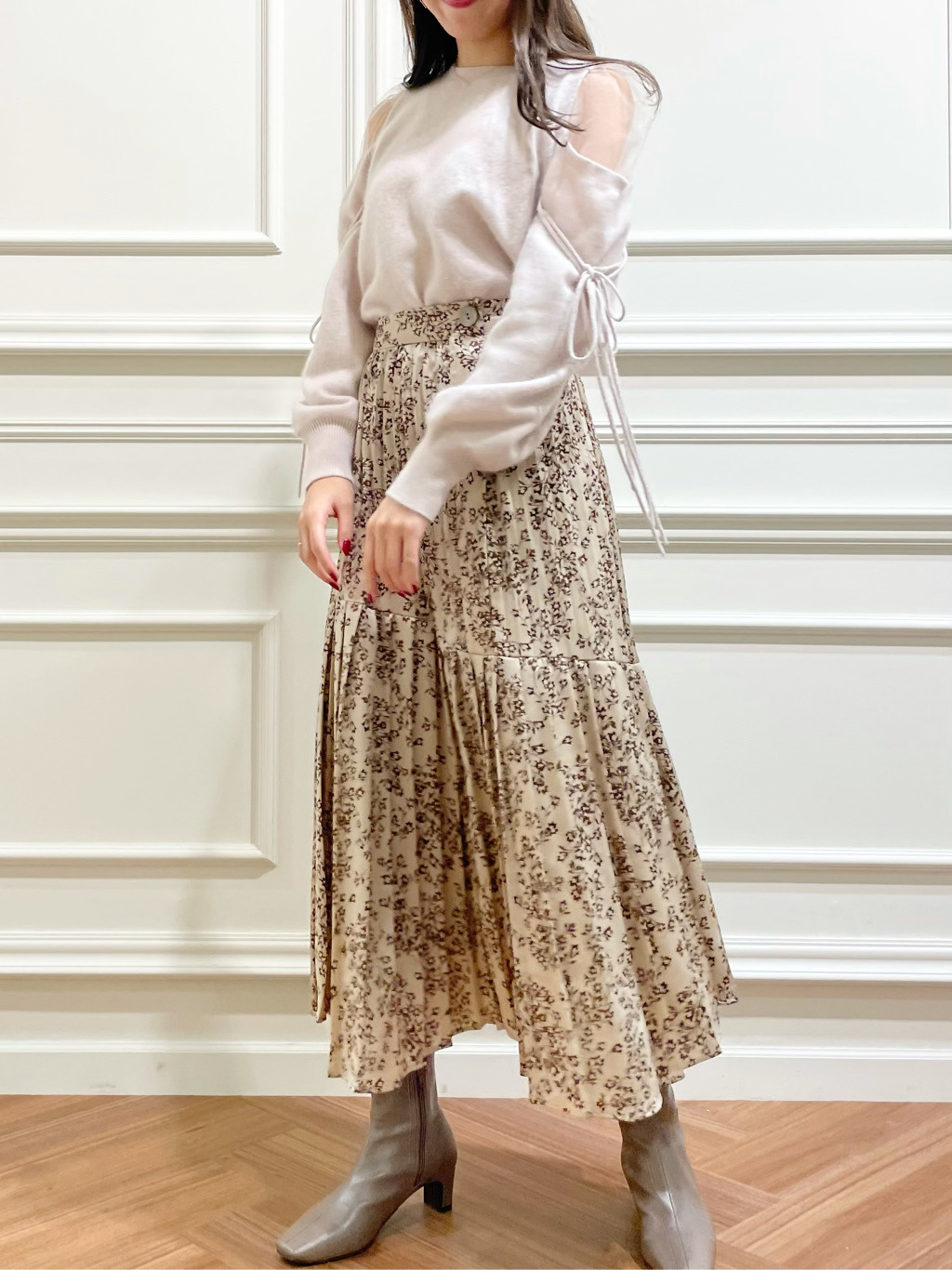 重くなりがちなニットから素肌を覗かせれば、軽やかさと抜け感が手に入ります。