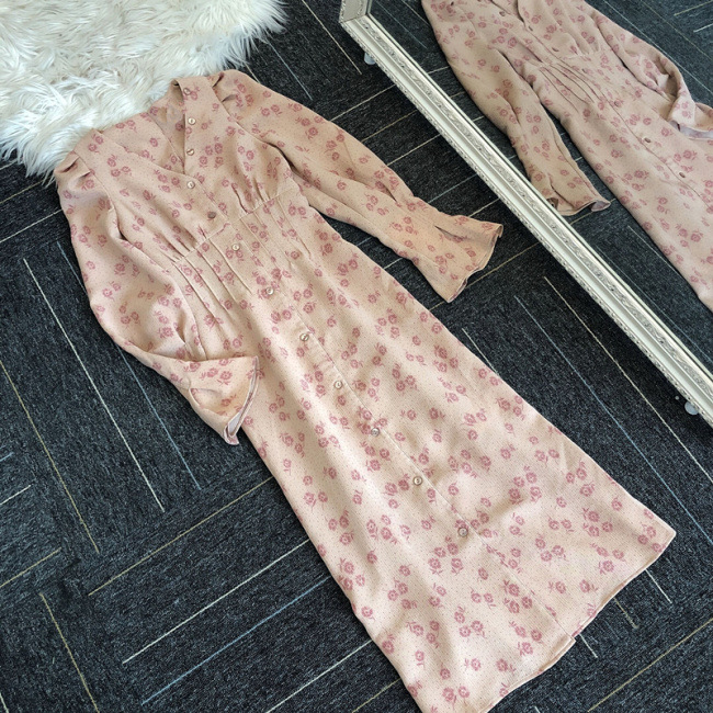 スタイルアップを叶えるプリントワンピース。メリハリのあるタイトシルエットをつくるウエストタック、バックには身幅のサイズ調整が可能のレースアップをデザインしました。配色のPNKとワントーン見えのBRWのクラシカルな2色展開です。