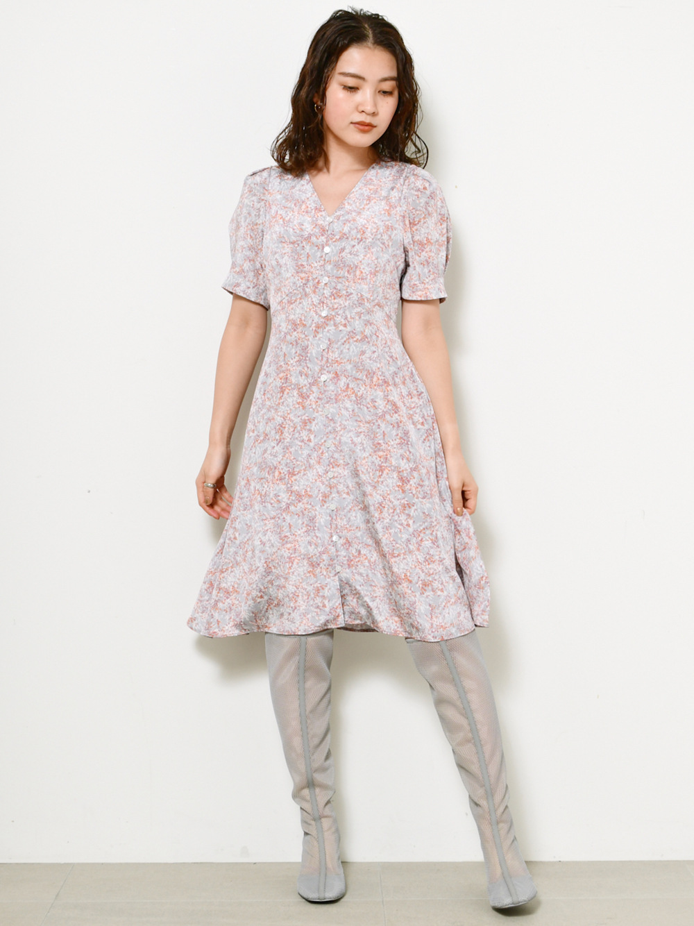 華やかに仕上がるSNIDEL人気のプリントワンピースは、ミニ丈で仕立てることでトレンド感をプラス。