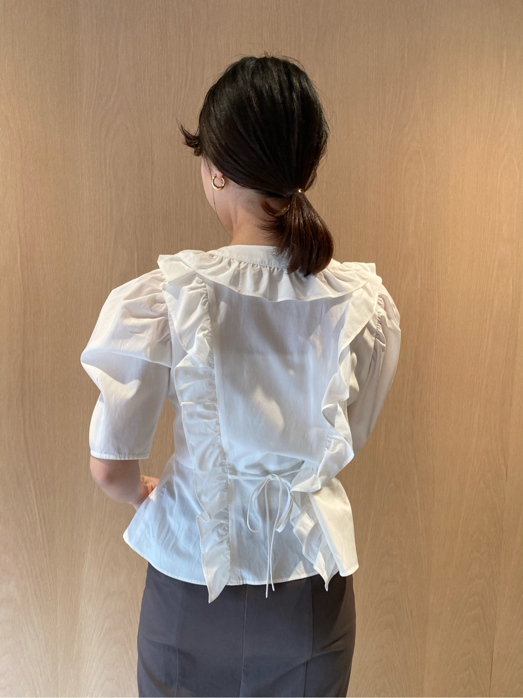 Sustainableフリルカラーブラウス