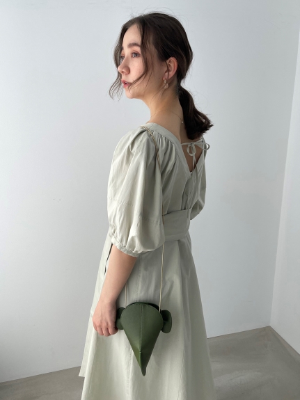 大胆にカッティングした前後のVネックが色香を纏う、コットンステッチワンピース。これからの季節に快適な清涼感のある生地を使用し、着心地の良さとナチュラルな雰囲気、女性らしい佇まいをバランス良く表現しました。ふっくらと丸いパフスリーブでトレンド感をプラス。タックでメリハリを出したウエストラインは、ベルトなしでも美しいシルエットを描きます。