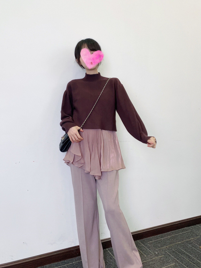 【ショートニットとプリーツキャミの女性らしいボリュームバランスにこだわったニットドッキングプルオーバー】