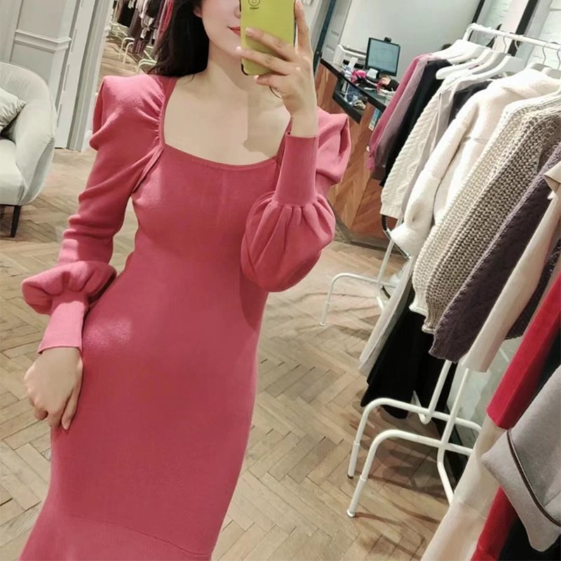 【パフスリーブとマーメイドの緩急が女性らしさを最大限に引き出すニットワンピース】