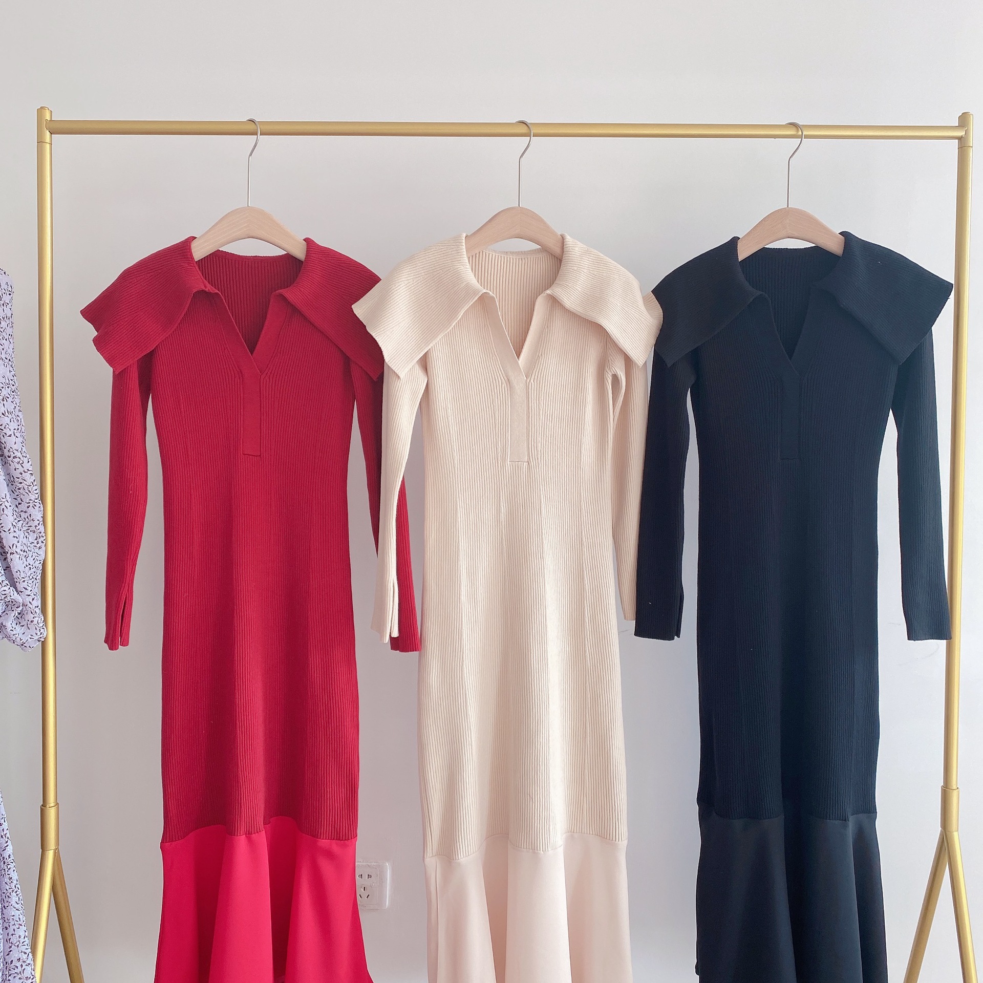 ビッグカラーコンビリブニットワンピース