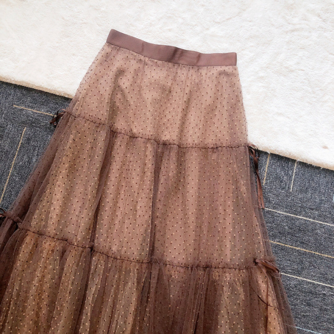 裏地の上に2色のドットチュールとチュールを重ねたことにより、大人っぽく立体感のある魅力的な一枚に仕上げました。