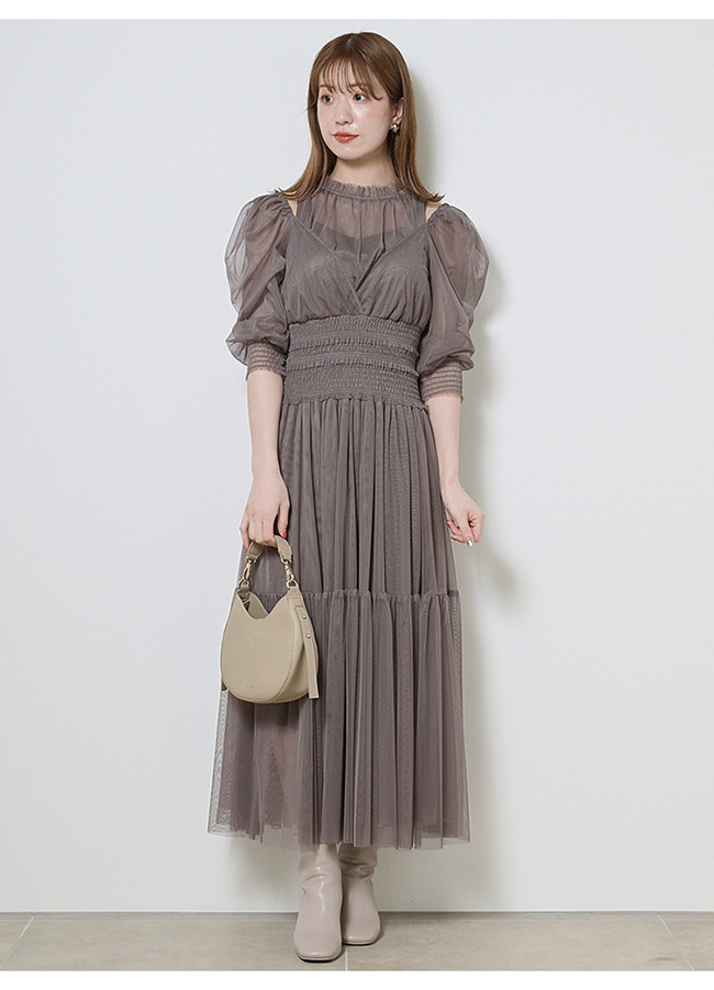 【肩周りが2WAY仕様で楽しめるロマンティックなチュールドレス】