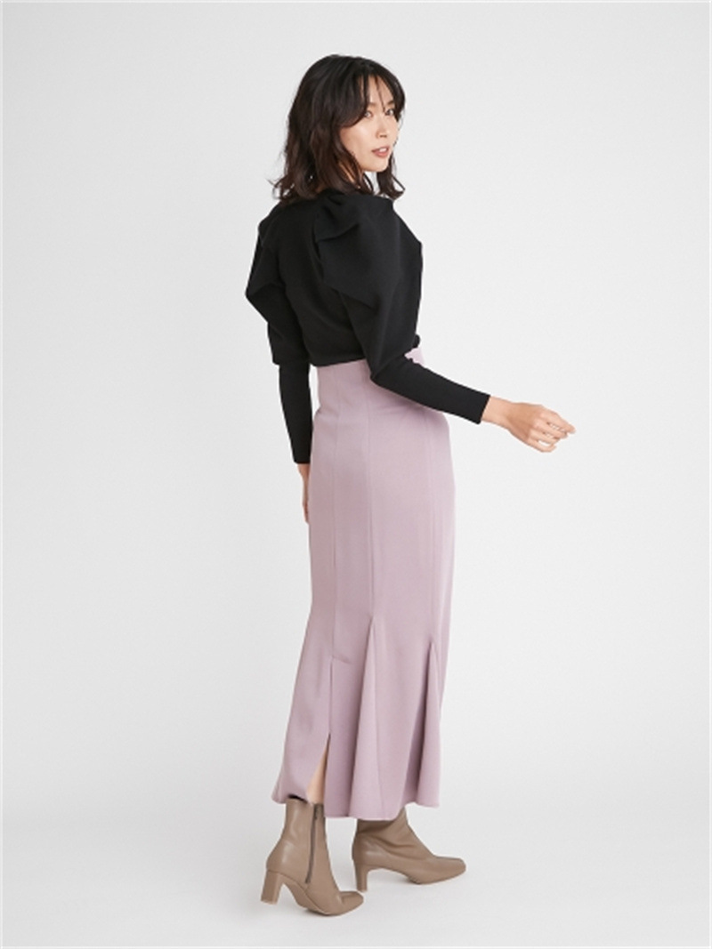 まるでコルセットをレイヤードしているかのような技ありデザインが目を引く、上品クラシカルなニットプルオーバー。絶妙なカーブを描く胸元のラインが、さり気なく女性らしさを高めてくれます。タックを効かせたっぷりとボリュームを持たせたパフスリーブとタイトな身頃のメリハリシルエットでスタイルアップ効果は抜群。ゆったりと広がるフレアスカートからパンツまで様々なボトムと相性が良く、着まわし力も◎です。