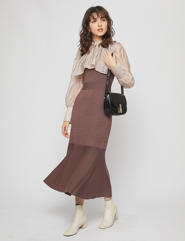 透明感のあるシアーな布帛と程よい厚みのあるニット素材を使用。スタイリング力の高いブラック、ベージュ、モカの3色をご用意しました。