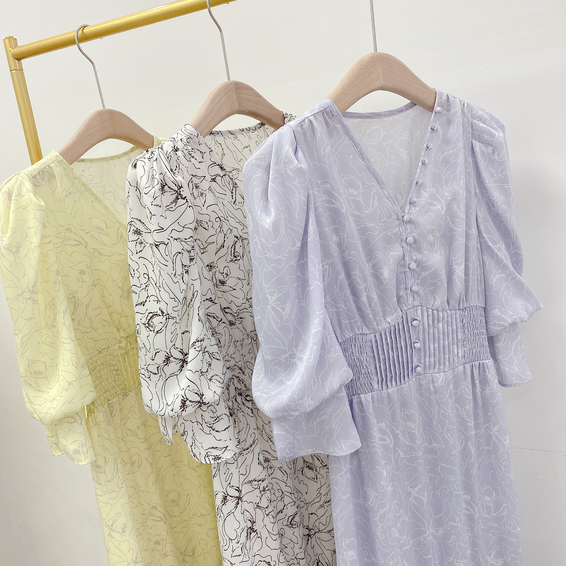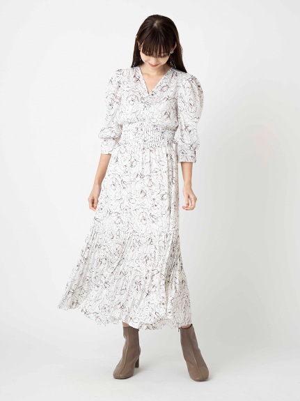 【繊細なタッチで描かれたオリジナルプリントが春ムードをもたらすワンピース】