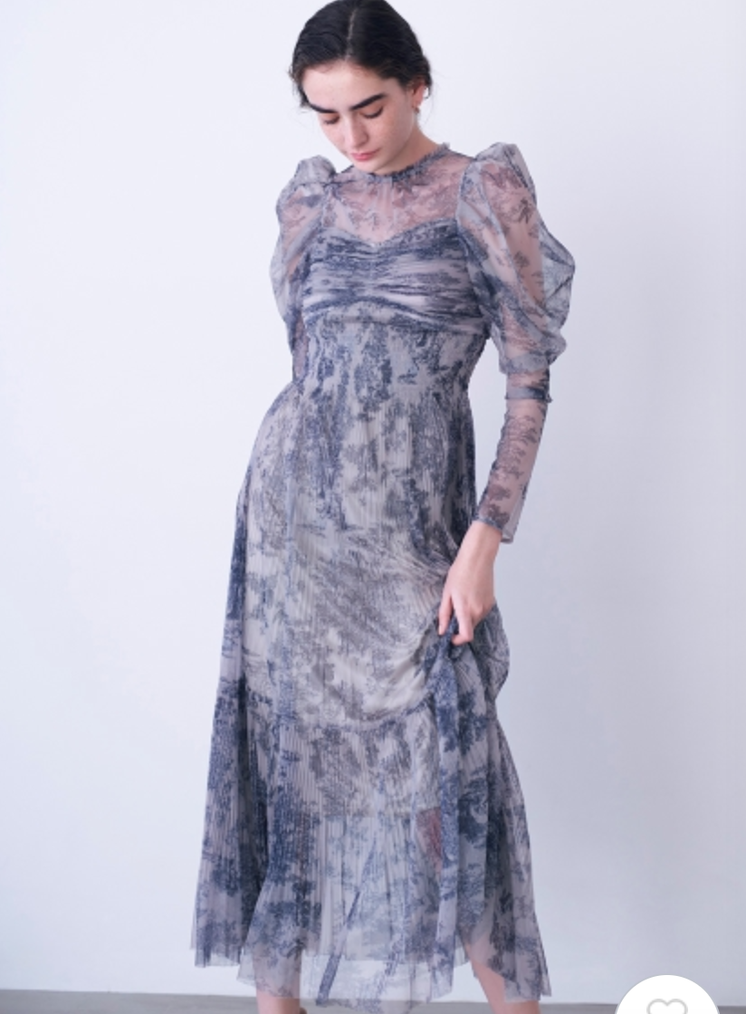 シアーなチュール素材を用いた人気のワンピースが登場。今季は春らしいカラーに加え、エレガントなトワルドジュイ柄を揃えました。巧みなプリーツの切り替え&ゴムシャーリングで表情豊かな仕上がりに。立体的な丸みを持たせたボリュームスリーブは女性らしさを高めるうえに、ボディを華奢に見せてくれます。ハイウエストの位置から裾に向かってひらりと広がるフレアシルエットで、スタイルアップ効果も◎。