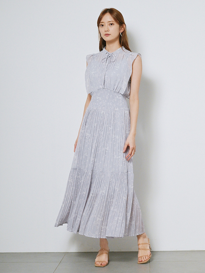 「SNIDEL」ならではの上品で愛らしいオリジナルプリントを浮かべたワンピース。胸元でキュッと結んだリボンやボリュームのあるフリルでとことんレディに仕上げています。シャーリングを効かせたウエストから裾に向かってひらりと広がるフレアシルエットでスタイルアップ効果は抜群。全体に細かく畳んだプリーツが表情にきちんと感を与え、洗練ムードを高めてくれます。インナーキャミソール付きで透け感を気にせず着られるのも嬉しいポイント。