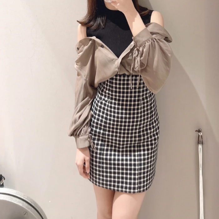 シンプルなノースリニットにブラウスをレイヤードした技ありデザインのトップス。シャツ部分をオフショルにしたり、取り外したりと自由にアレンジが楽しめるスタイリング力抜群の1着です。袖口にリボンがあしらわれたボリュームスリーブが愛らしさを高めるポイントに。裾をインしてもアウトでもバランス良く決まるので、様々なコーディネートに活躍してくれます。