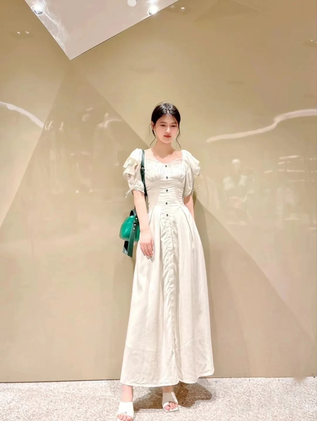 スリーブデザインスクエアネックワンピース 入金確認後7-10営業日発送(土日祝日除く)