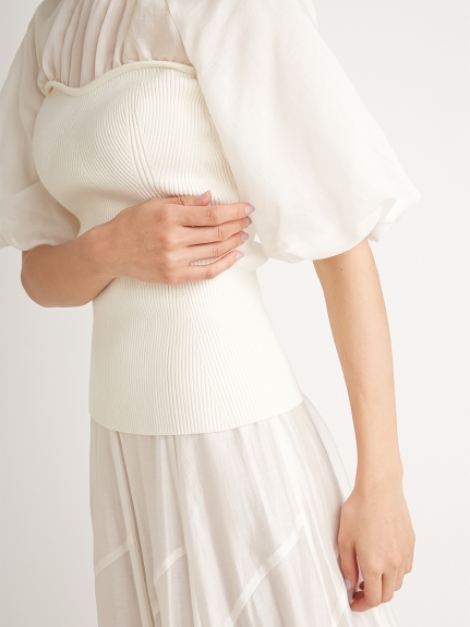程よい透け感のあるしなやかなファブリックとソフトなリブニットを組み合わせました。女性らしい柔らかな雰囲気のオフホワイト、落ち着いた印象を与えるグレーベージュ、今季のキーカラーで春らしいピンクの3色でお届けします。
