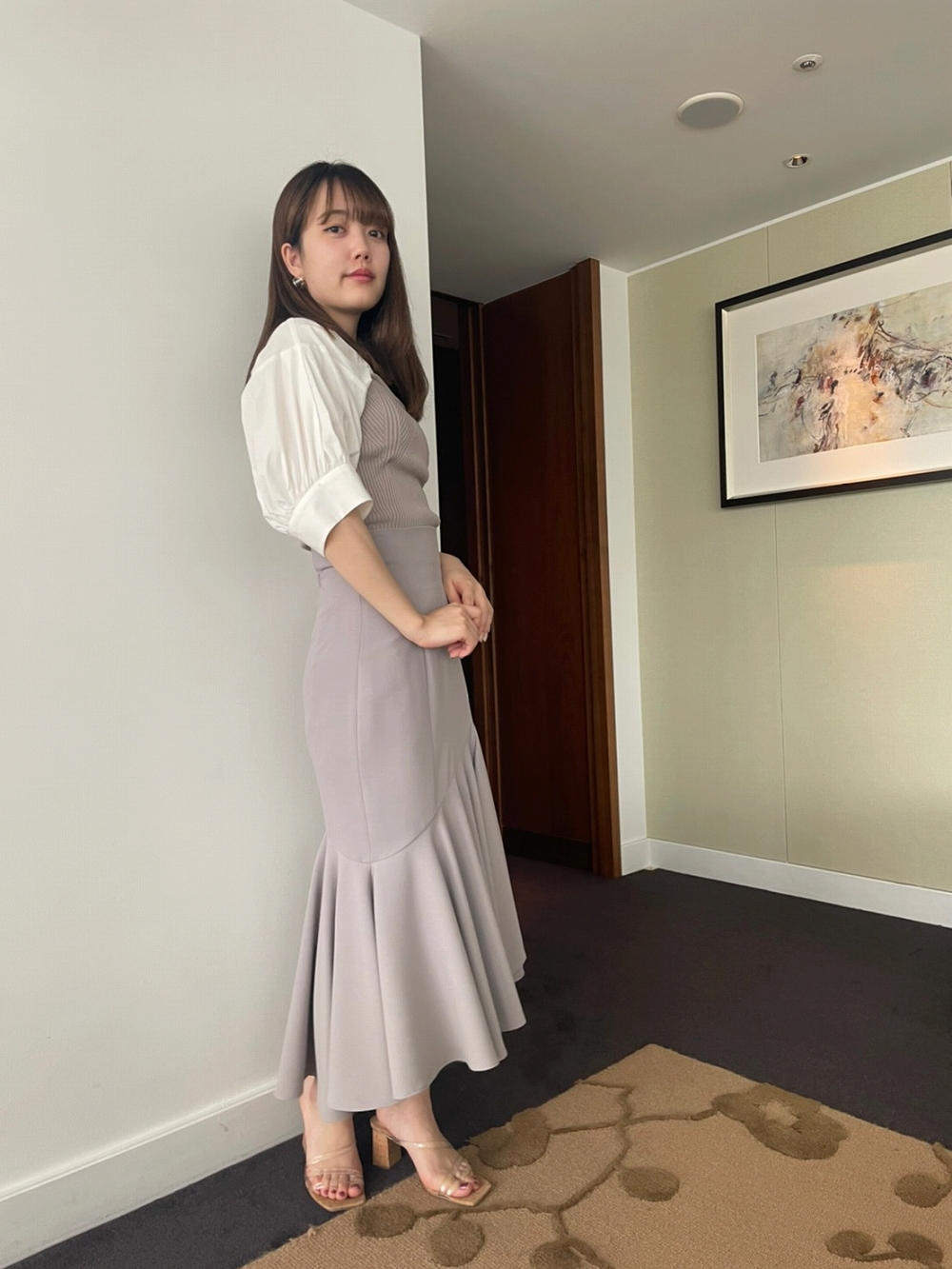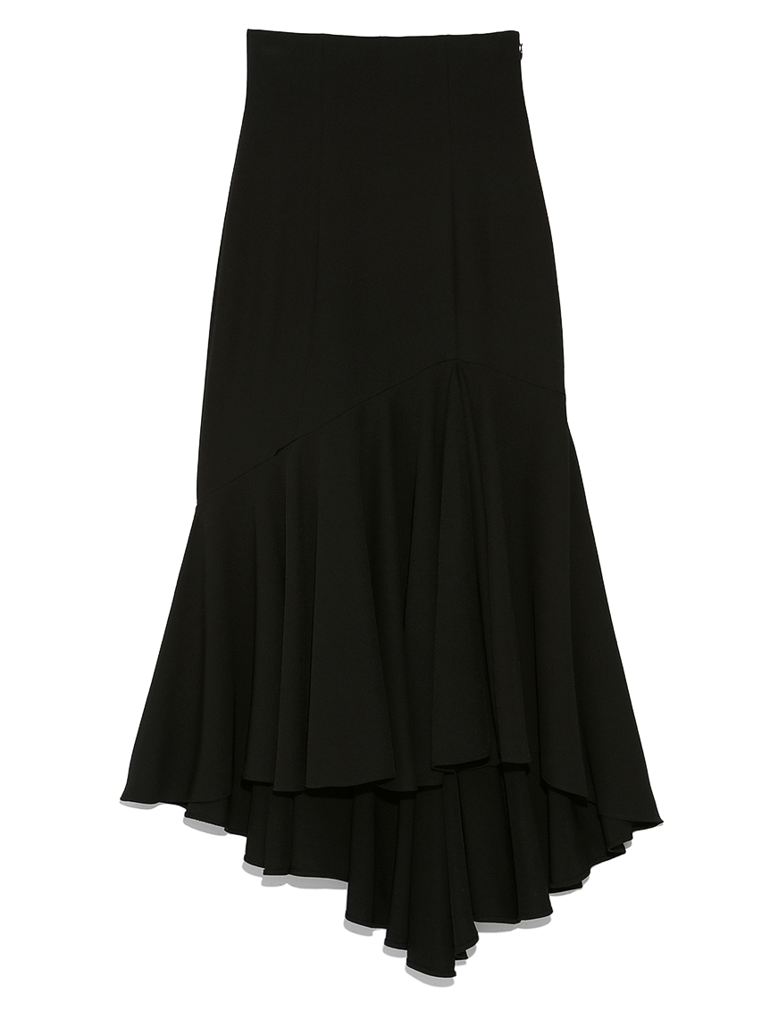 アシンメトリーなパターンワークで形成されたフィット&フレアの美シルエットが印象的。モードかつエレガントなフォルムで、女性らしさを存分に引き立てるスカートが届きました。バックにかけて長くなるイレギュラーなヘムラインが体型をバランス良く見せてくれます。トレンドライクなハイウエストデザインは、トップスをINしてすっきりとまとめるのが◎。バックウエストはゴム仕様なので伸縮性があり、フィット感がありながらも穿き心地は快適です。