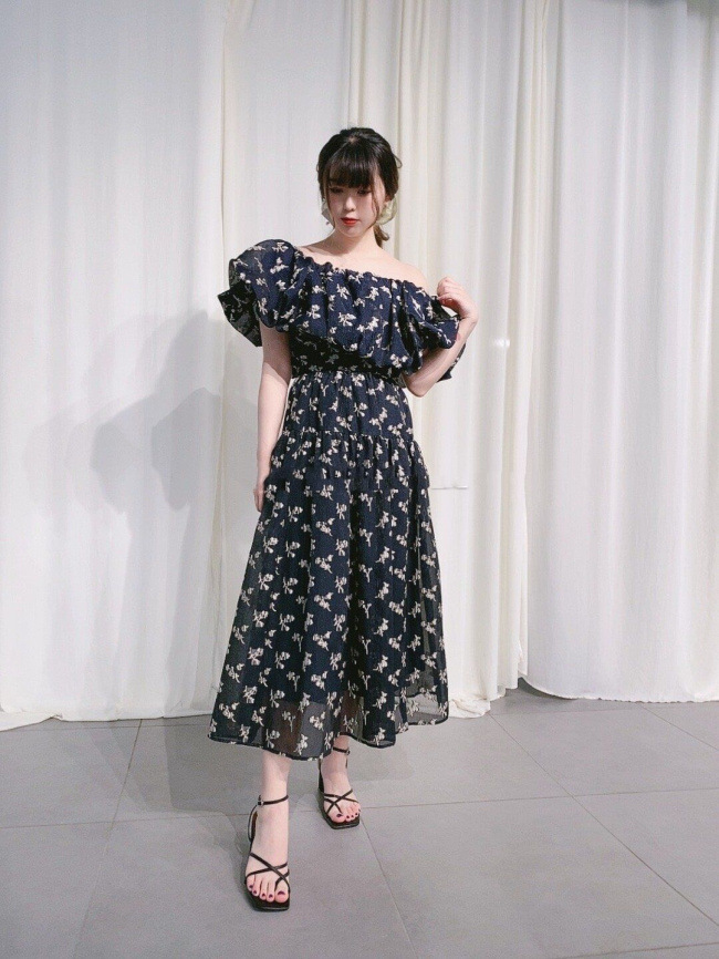 ジャカードオフショルブラウス+ジャガードボリュームスカート