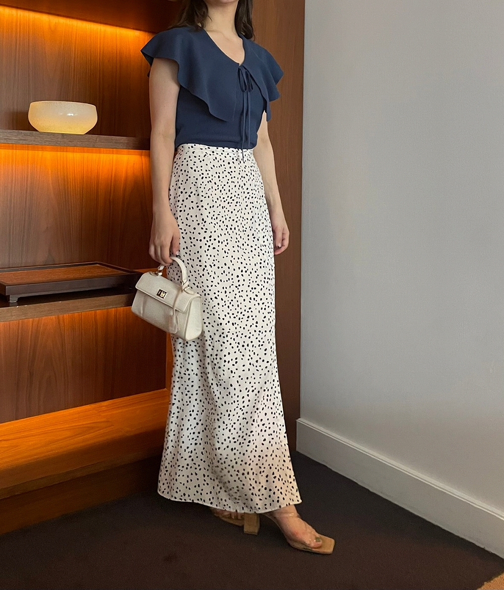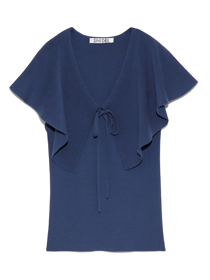 ひらひらと波打つ大きめの襟が特徴的な、クラシカルなムードのニットプルオーバー。トレンドが続くビッグカラーを春夏らしい軽さの感じるデザインにアップデートし取り入れました。すっきりと開いたVネックが女性らしさを感じさせるポイント。キュッと結んだリボンも相まって、愛らしさをぐっと高めてくれます。フィット感のあるスリムなシルエットなので合わせるボトムを選ばず、着まわし力も抜群。
