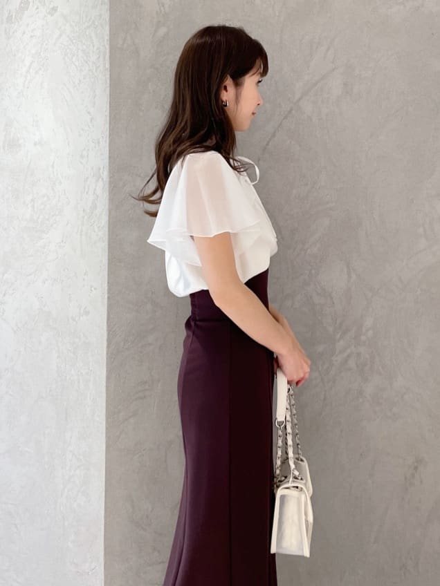 トレンドのプチフリルを襟や肩にあしらってアクセントにしています。
