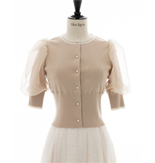 ホリデーシーズンのOrgandy Fairy Knit Topが可愛かったので半袖バージョンを作ってみました!今回は優しいニュアンスカラーのmilky saxとbeigeの2色展開です。