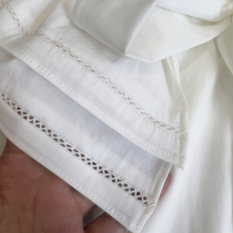 立体的なはしごレース付きWカラーがポイントのボウタイブラウス。