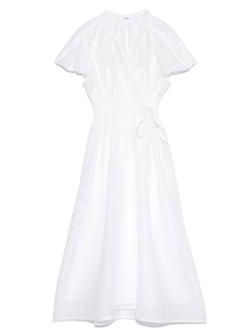 シャキッとした素材感を持つ格子柄のシンプルなラッセルレースとリブニットを組み合わせました。ホワイトとブラックの着まわしやすいカラー展開でお届けします。