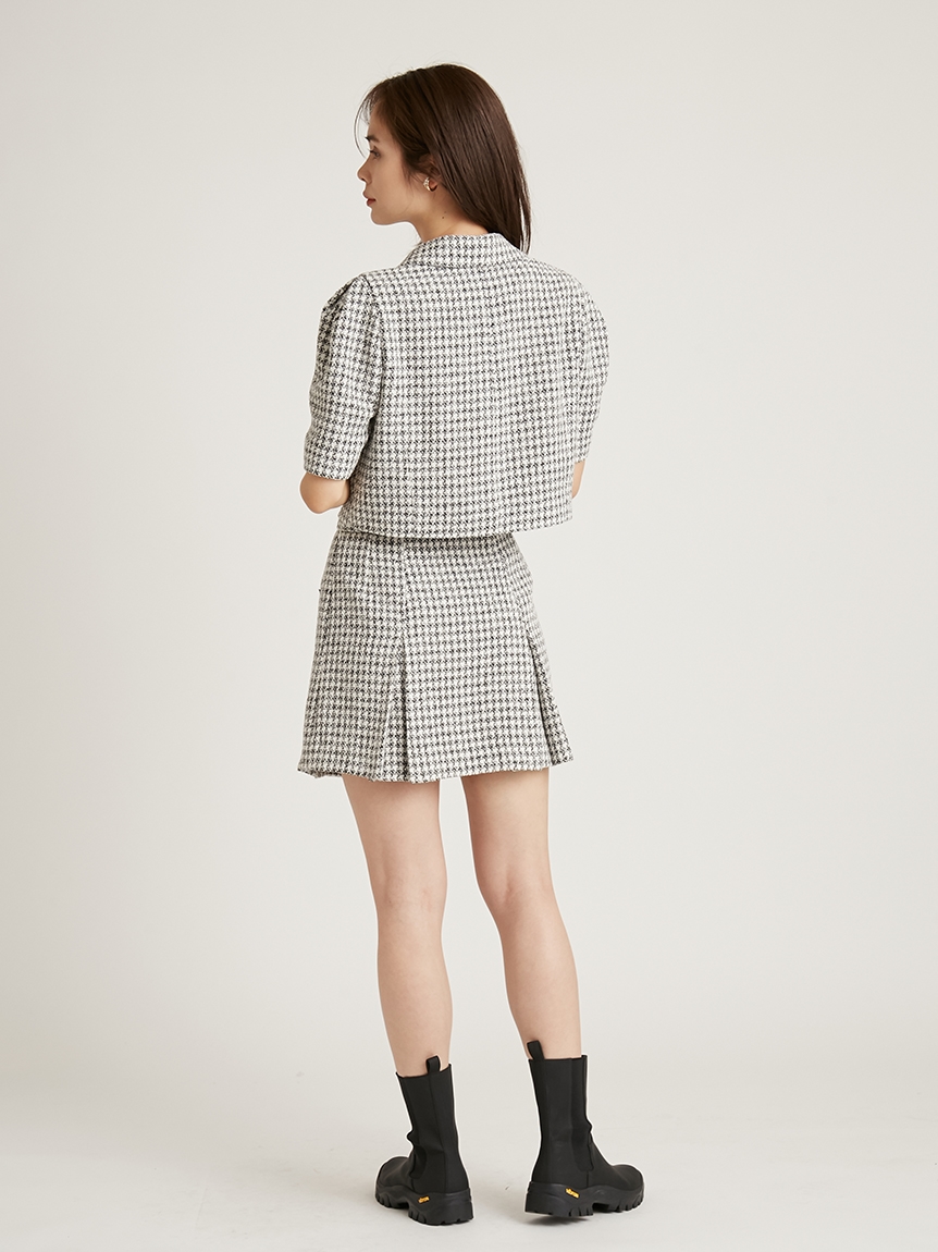 表面感のあるツイード素材を用いたホワイト、ライトな布帛のベージュ、千鳥柄ツイードを使用したミックスの豊富なバリエーション展開でお届けします。