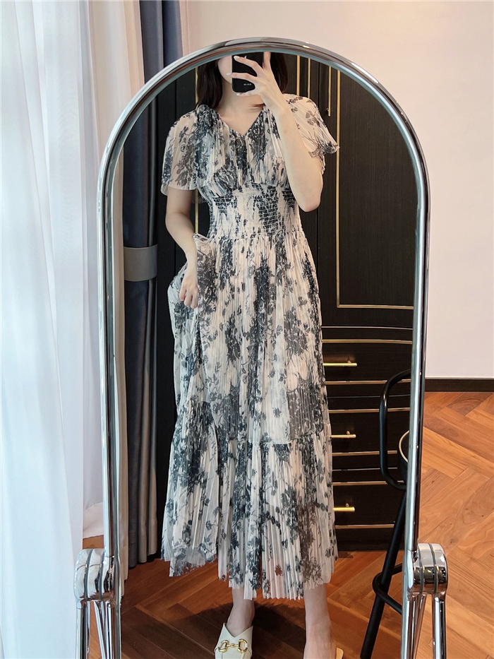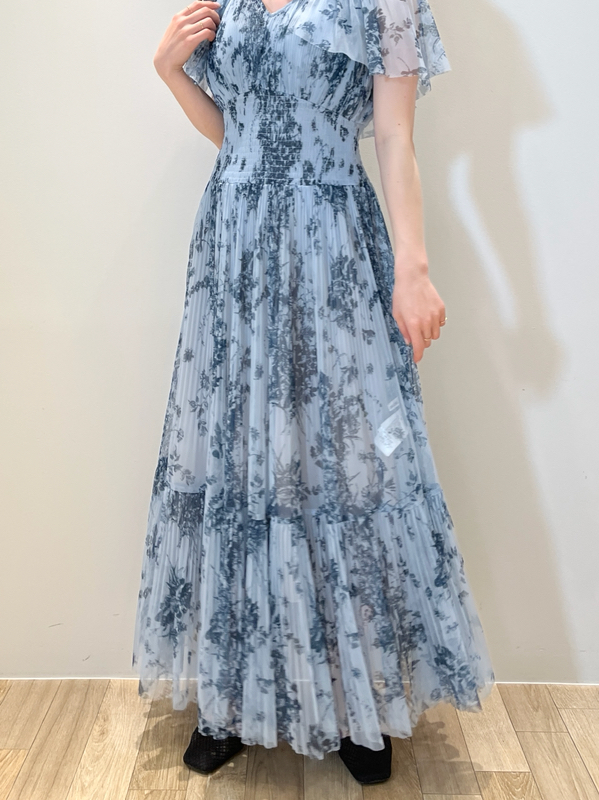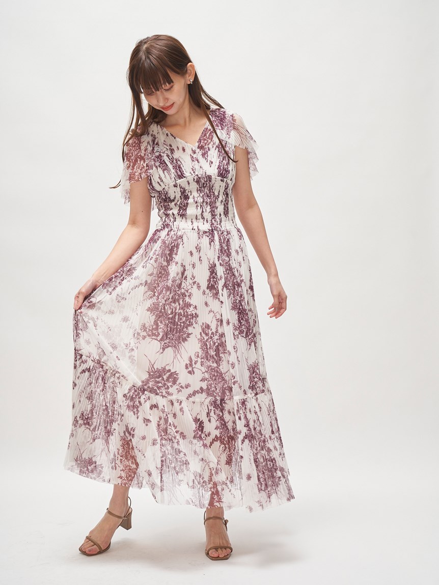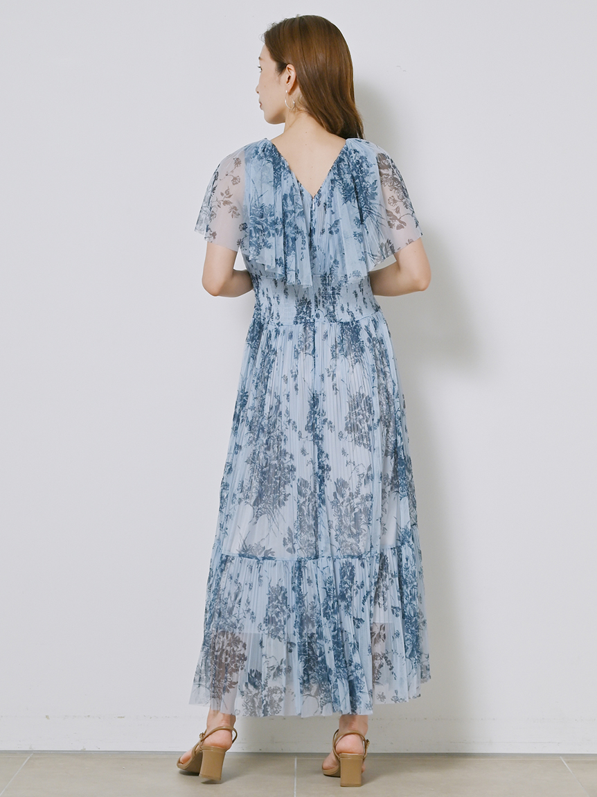贅沢に細やかなプリーツを効かせた、エレガントで華やかなチュールドレス。ひらりと広がるケープ風の袖でトレンド感も押さえています。ウエスト部分はシャーリングでキュッと締めることでメリハリのあるシルエットをメイク。スタイルアップ効果を存分に期待できます。合わせるアイテム次第でオケージョンシーンからデイリーまで幅広く活躍してくれる万能な1着です。