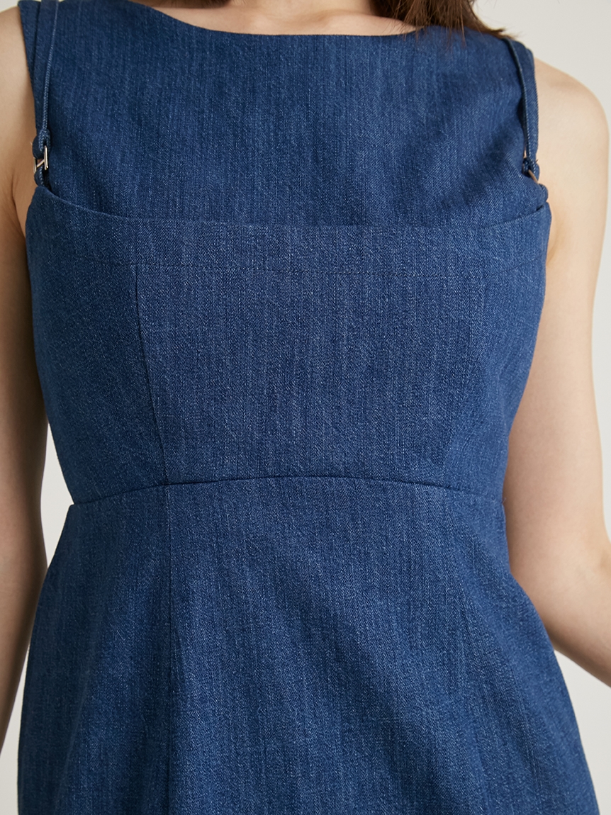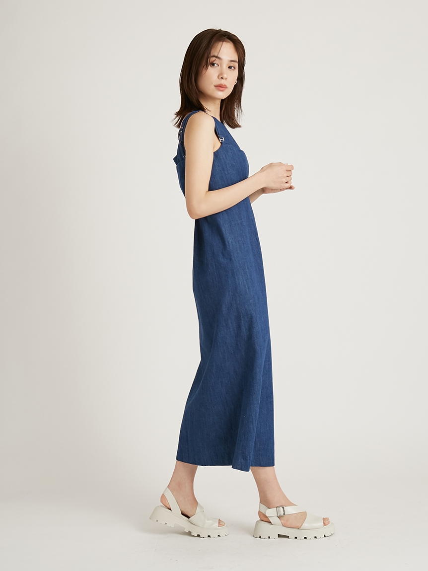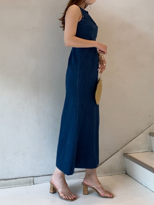 身頃部分のレイヤード風デザインがポイントになった、1枚でもお洒落度の高い着こなしを叶えるワンピース。ハイウエストの切り替えから裾に向かってゆるやかに広がるややマーメイドなラインが品の良さを感じさせる秘訣。バックネックにはビット付きのストラップをあしらい、後ろ姿まで抜かりなく仕上げています。バックウエストにはゴムを効かせているので程よい伸縮性があり、着心地も快適です。