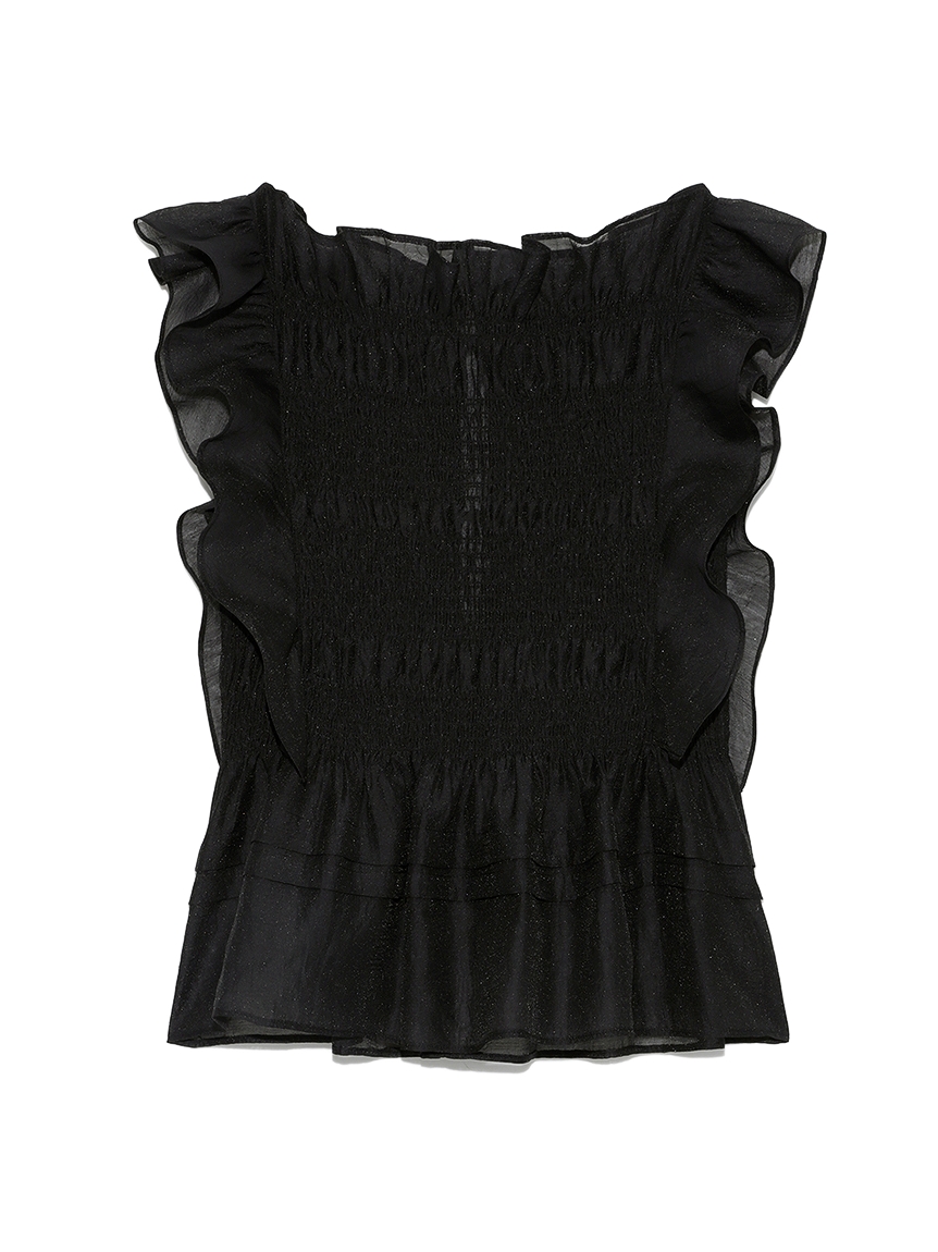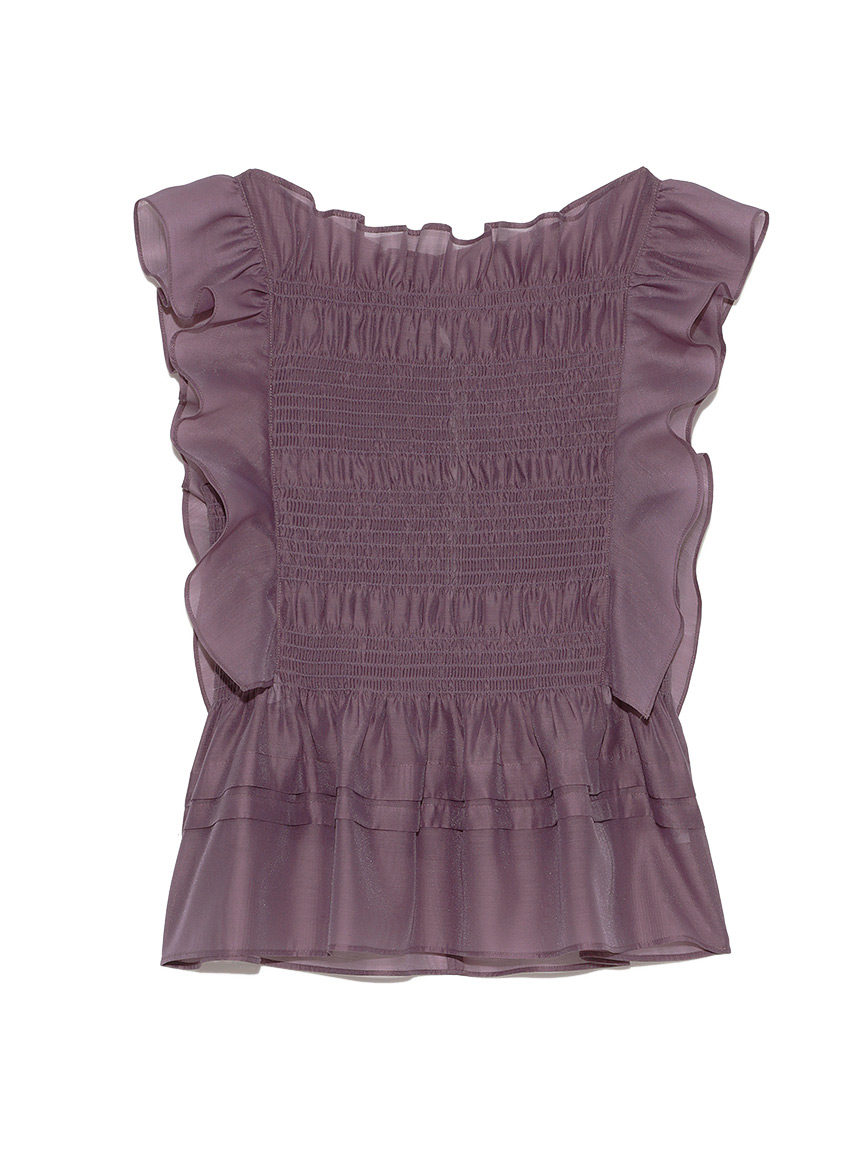 シボ感のあるオーガンジーを用いたトレンドのフリルブラウスです。
