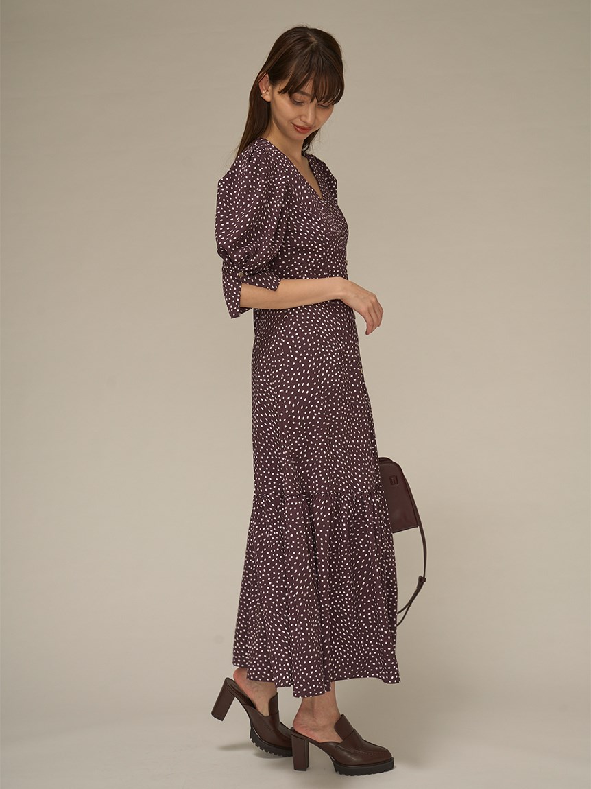 オリジナルのプリントで存在感たっぷりに仕上げたバリエーションデザインのワンピース。秋冬らしさを感じるカラー展開でまだ暑い時期にも季節を先取りできるアイテムです。構築的なフォルムのボリュームスリーブが愛らしさを高めるポイント。胸下のラインに切り替えを入れたフレアシルエットで脚長効果があり、スタイルアップも存分に期待できます。