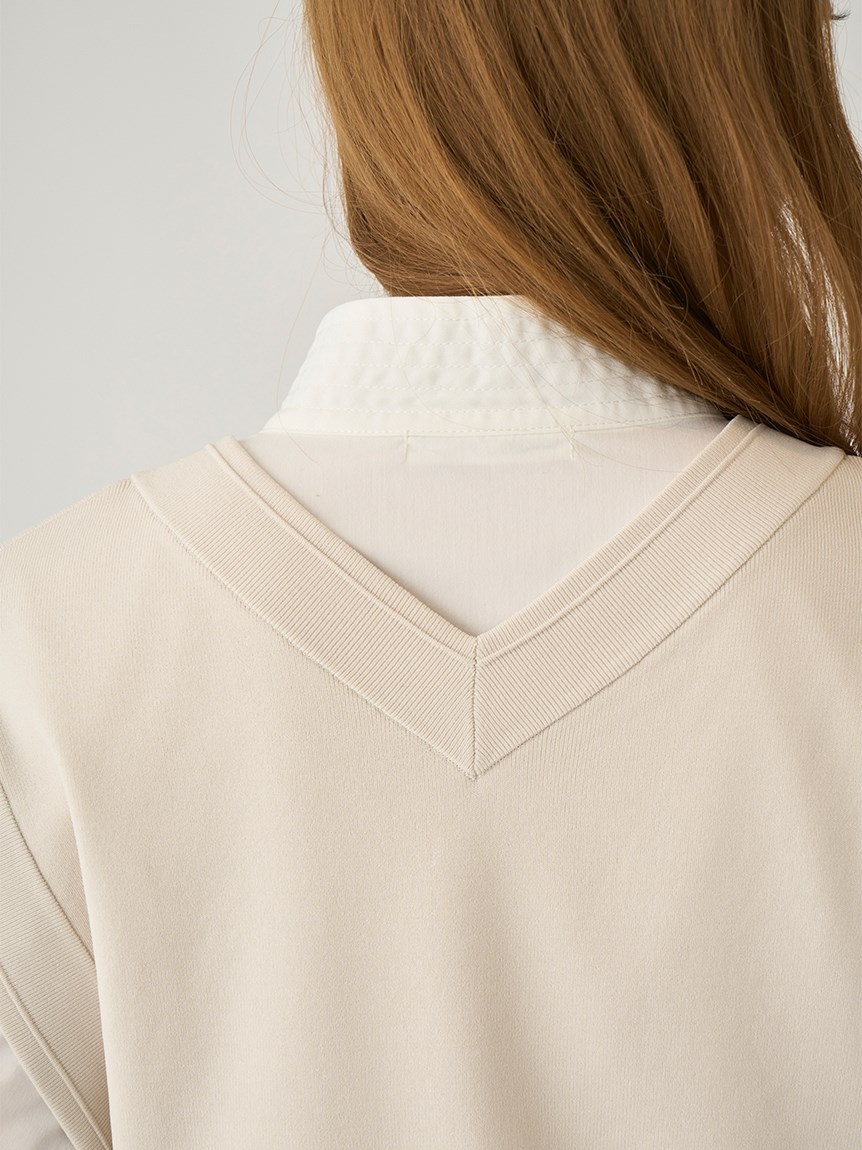 キレイめな質感のニットとライトなシャツ地を組み合わせました。優しい色合いでまとめたアイボリー、シーズンムード高まるバーガンディ、上品な印象を与えるネイビーの3色展開でお届けします。