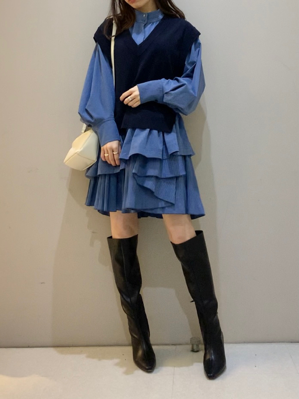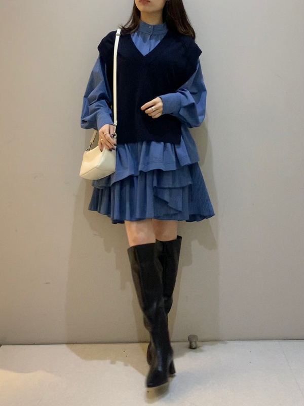 「SNIDEL」定番のニットベストコンビワンピースが到着。今季は裾にフレアやプリーツをあしらい、さらに華やかなワンピースに仕上げました。ニットベストは敢えてミニマルなデザインにすることでバランス良く着こなせます。アイテムごとに別々で着用もしていただけるので、コーディネートの幅が広がる優秀な1品です。