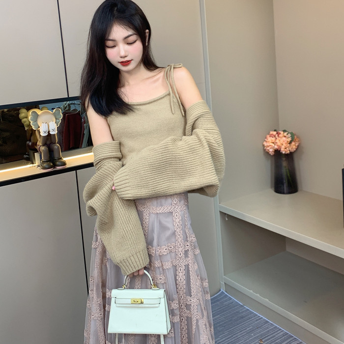秋冬のスタイリングに欠かせないボレロカーディガンとニットキャミソールの万能アンサンブル。キャミソールは肩紐を女性らしいリボンディテールにしているので、お好みの位置で結ぶことが可能。ボレロはルーズにゆるっと着られるサイズ感で、程よい抜け感を与えてくれます。それぞれ別々でもお使い頂け、幅広いコーディネートに活躍するアイテムです。