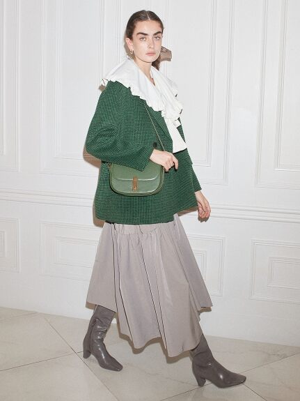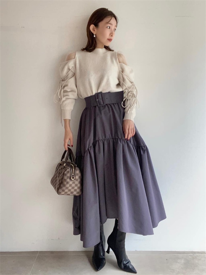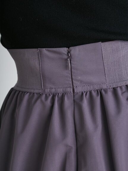 【バックルベルトの緩急シルエットが奥行きを醸すボリュームギャザースカート】