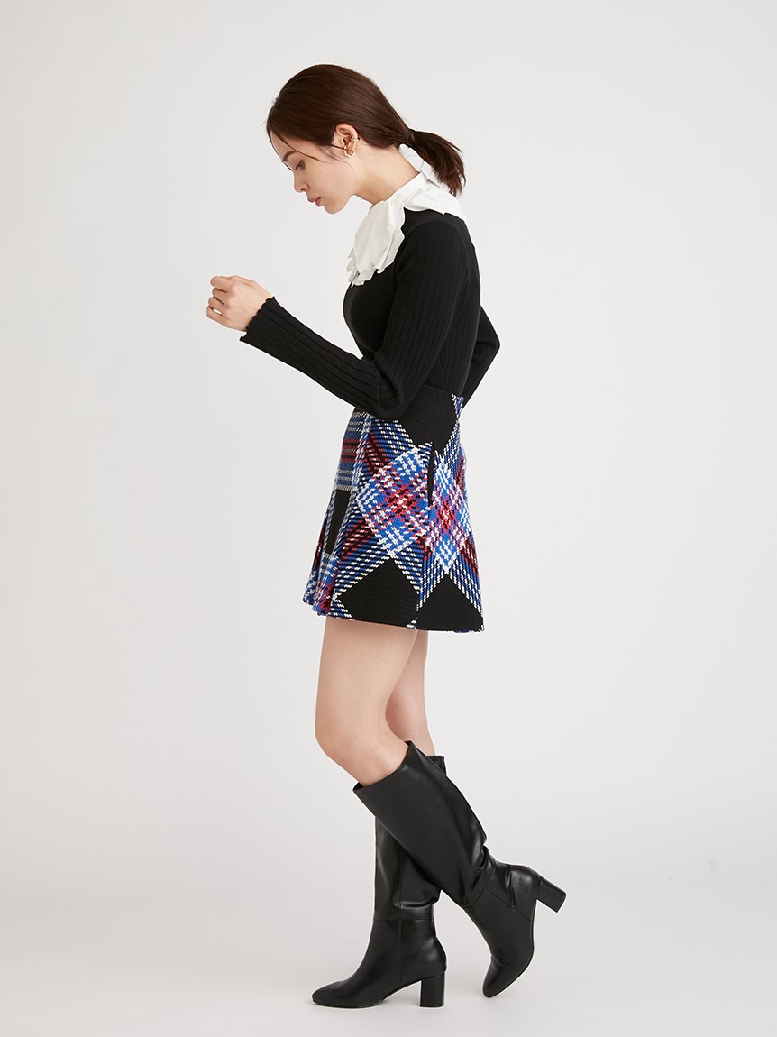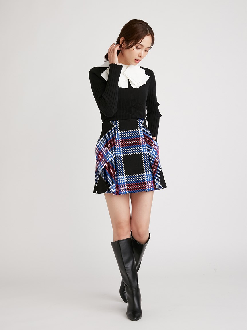 スカーフのようなフリリーな襟をドッキングした、今年らしいクラシカルなデザインのニットプルオーバー。身頃部分は編地に変化を付け表情豊かに仕上げています。ボディラインにすっきりと沿うタイトシルエットが女性らしさを高める秘訣。パンツともスカートとも合わせやすく、幅広いコーディネートに活躍してくれます。