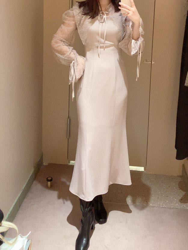 シンプルなバックサテンのキャミソールワンピースに、ドレッシーなレースのボレロを合わせたセットアイテム。オケージョンに最適な華やかかつ上品なデザインで、ヘルシーな肌見せを叶えてくれます。美しいくびれのあるマーメイドシルエットでスタイルアップ効果も絶大。それぞれ単品で他のアイテムにも合わせられるので、コーディネートの幅がぐっと広がります。