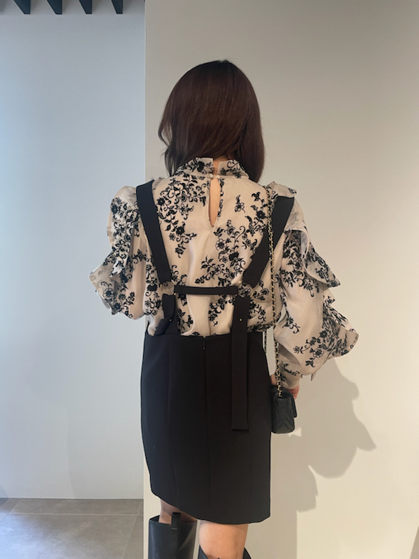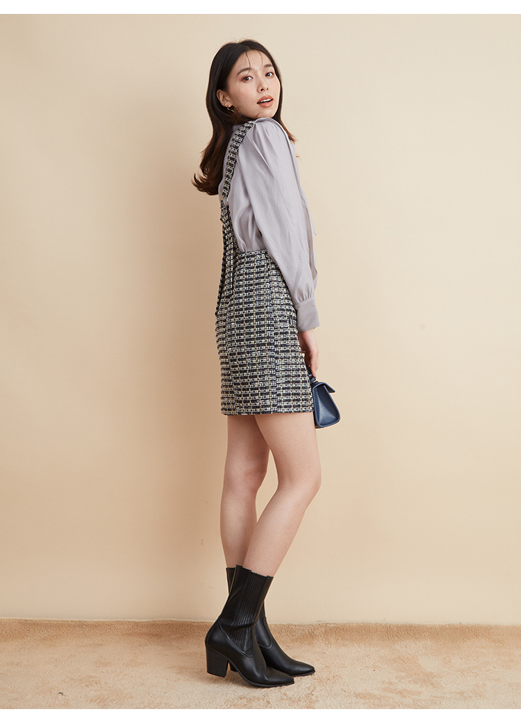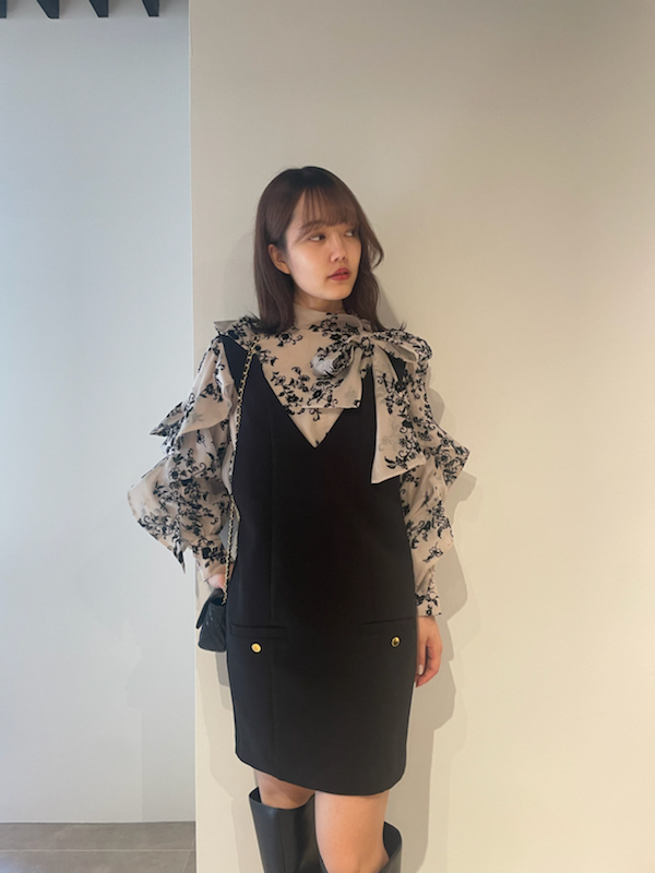 クラシカルなムードが漂うミニワンピースは、重ね着に最適な深いVネックが特徴。今季らしいボックスシルエットは切り替えディテールでシルエットを構築しています。合わせるインナーによってカジュアルにもきれいめにも着られる万能なデザイン。ストラップの長さを変えて丈の調節も可能なので、幅広い層にご着用いただける1着です。