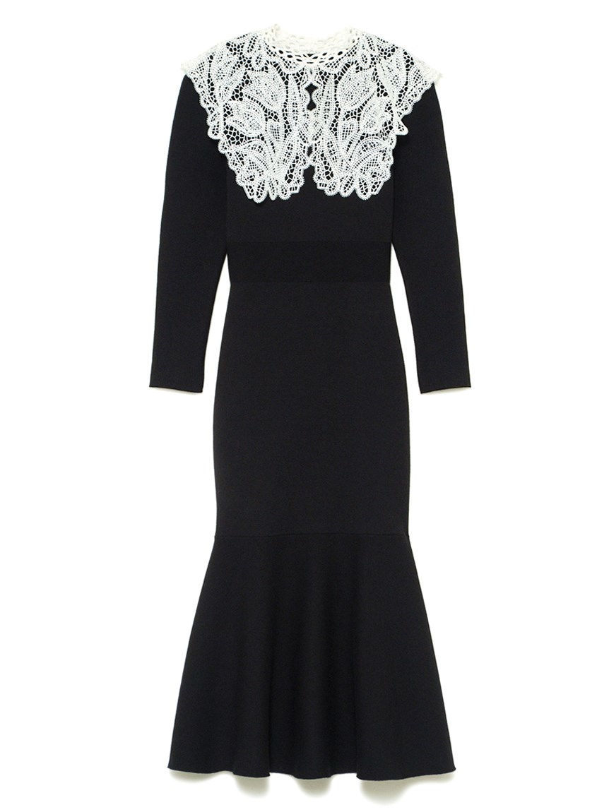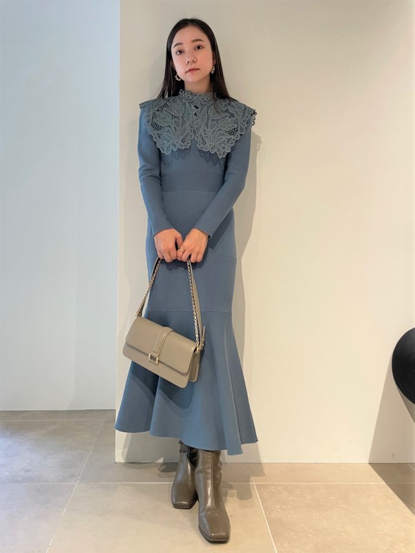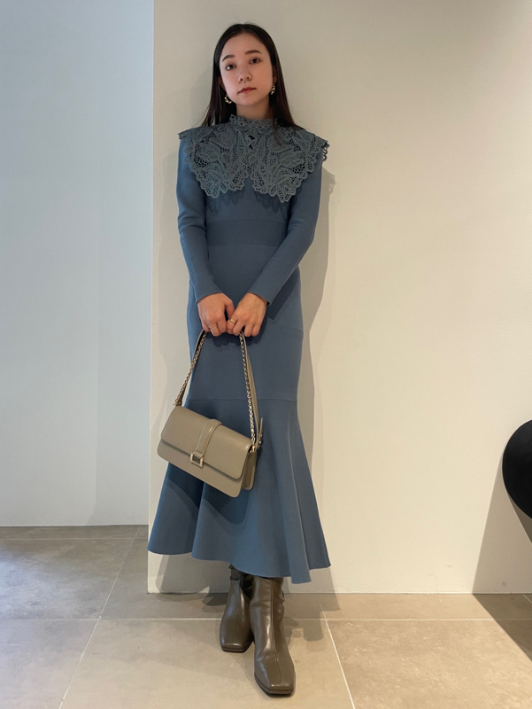 ビッグレースカラーニットワンピース