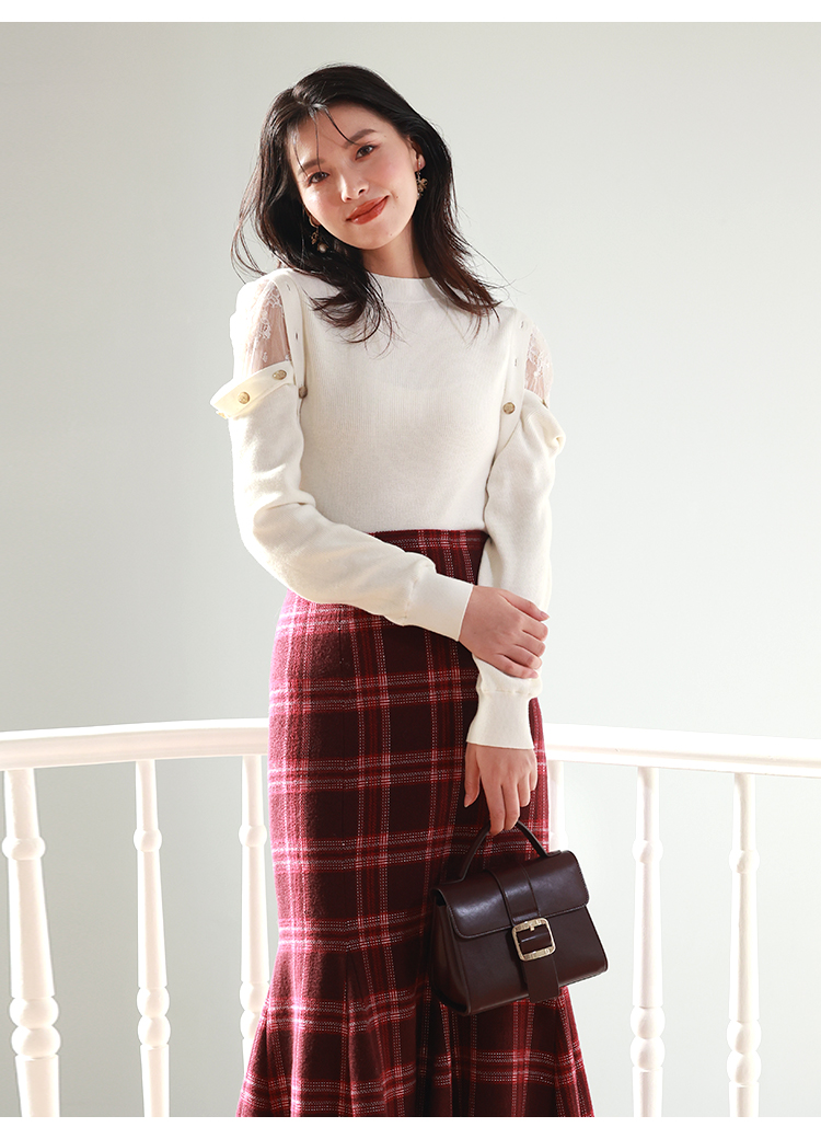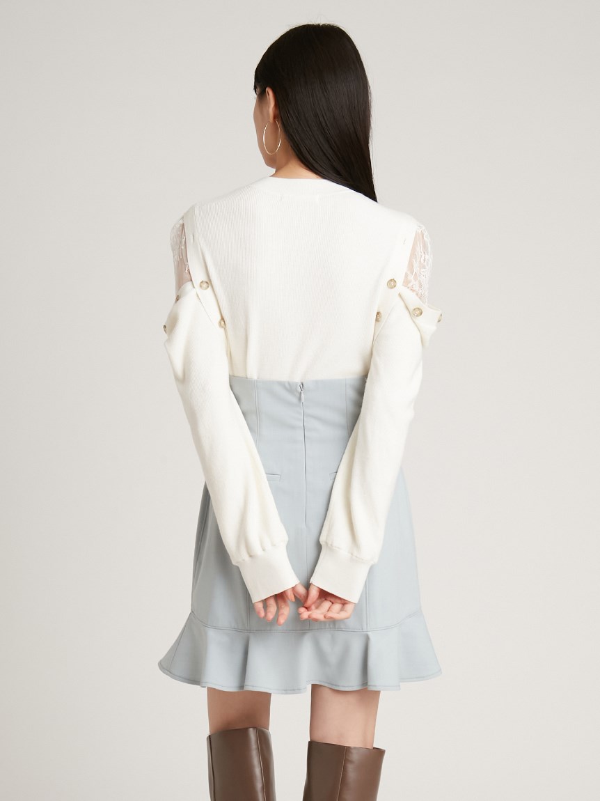 【2WAYで自由にアレンジできるショルダーレースのニットプルオーバー】