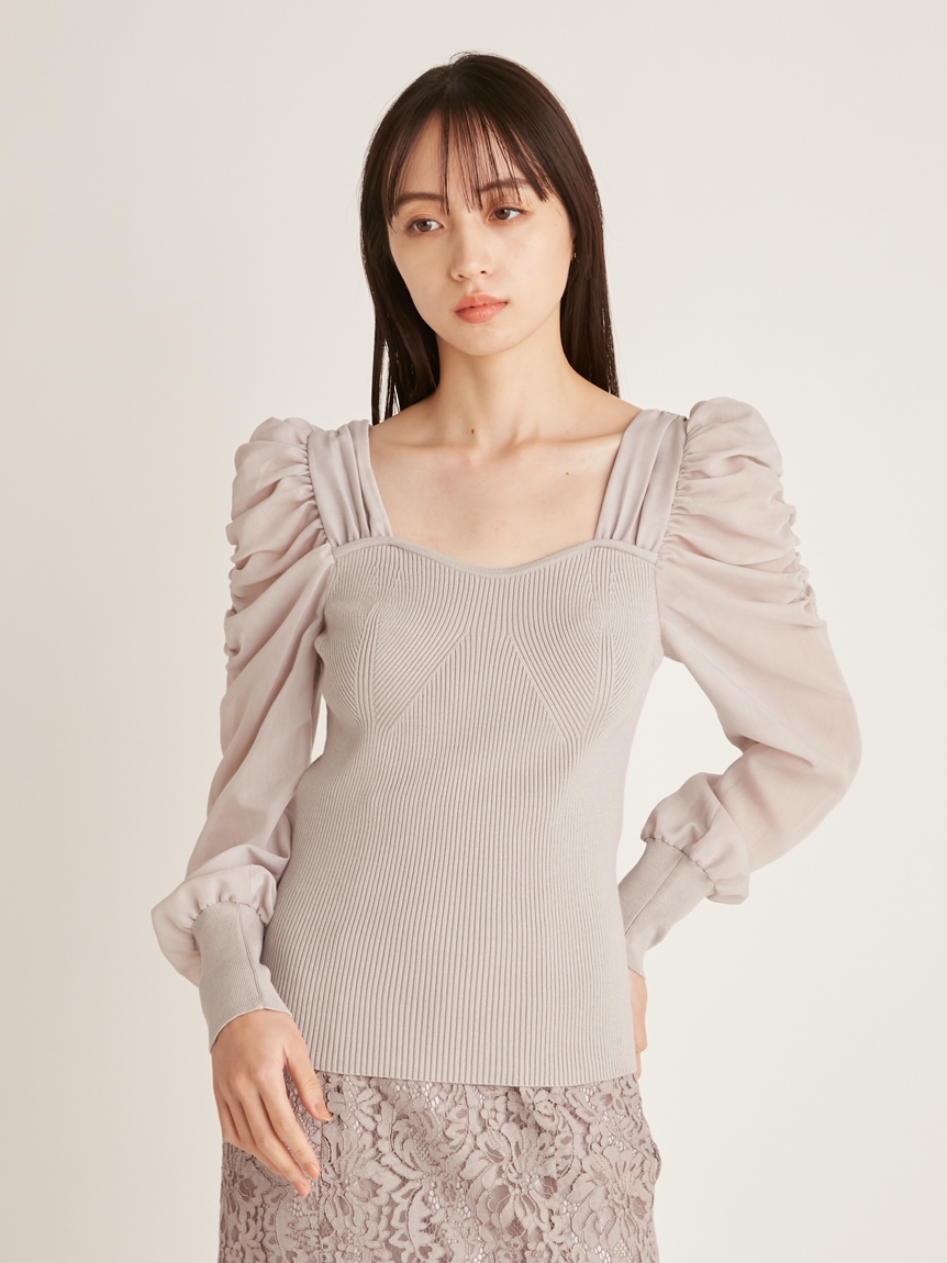 【女性らしいシアースリーブが目を引くニットプルオーバー】