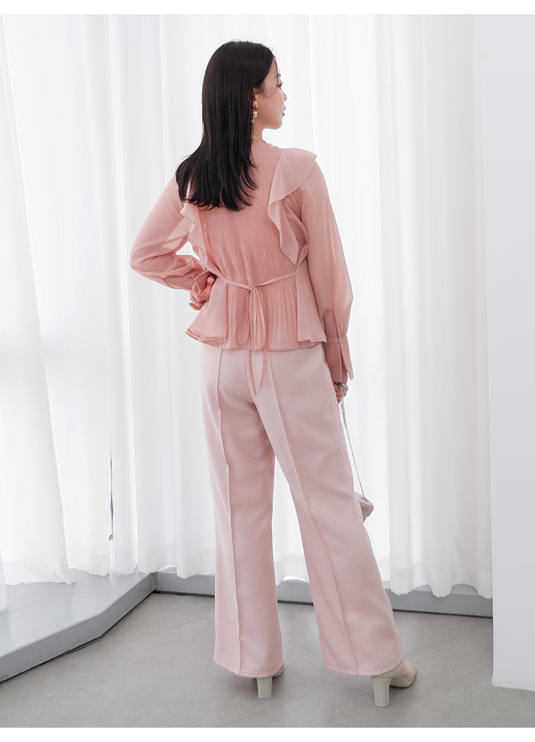 フリルシャーリングブラウス