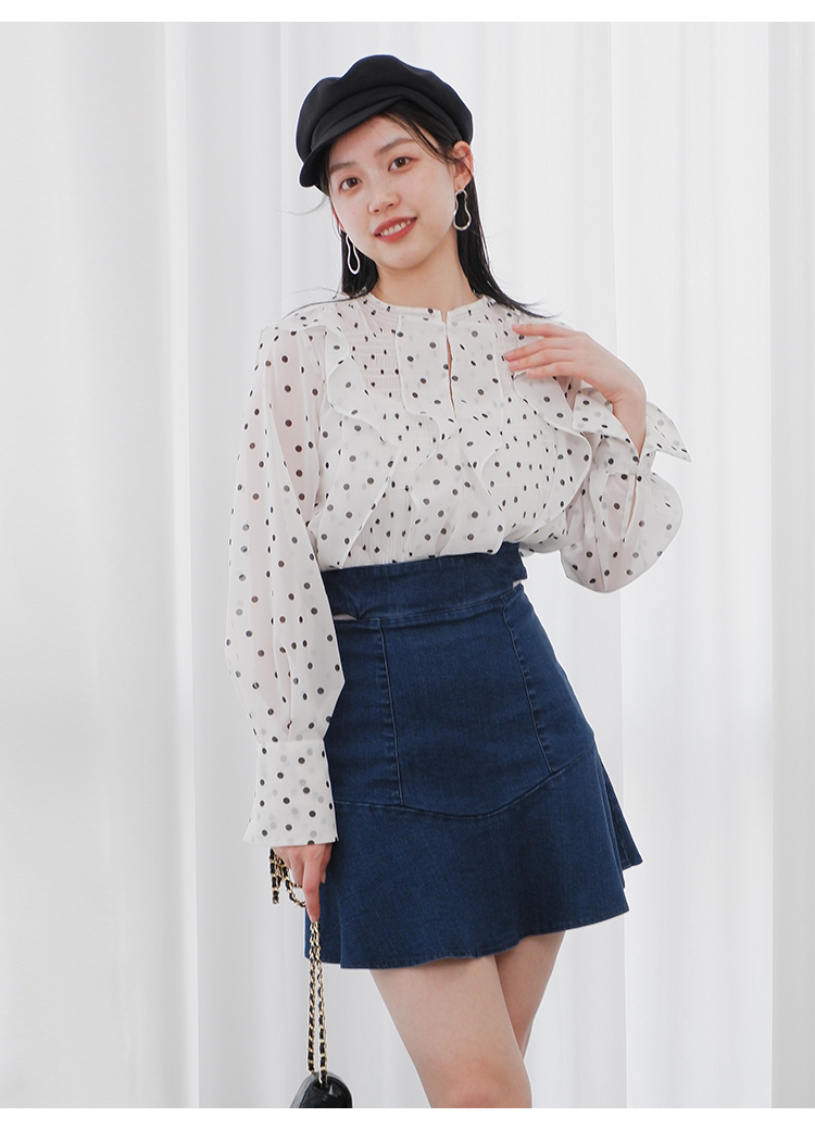 【モードとフェミニンを絶妙なバランスで表現したフリルブラウス】