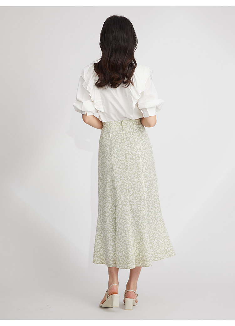 カラーごとに異なるプリントを浮かべたバリエーションデザインのロングスカート。素材の軽やかさと華やかなプリントがシーズンムードを高めてくれます。下の位置に切り替えを施し重心を落とすことでトレンド感を演出。切り替えにはパイピングを挟み込んでいるので縦見えになり、スタイルアップを叶えています。