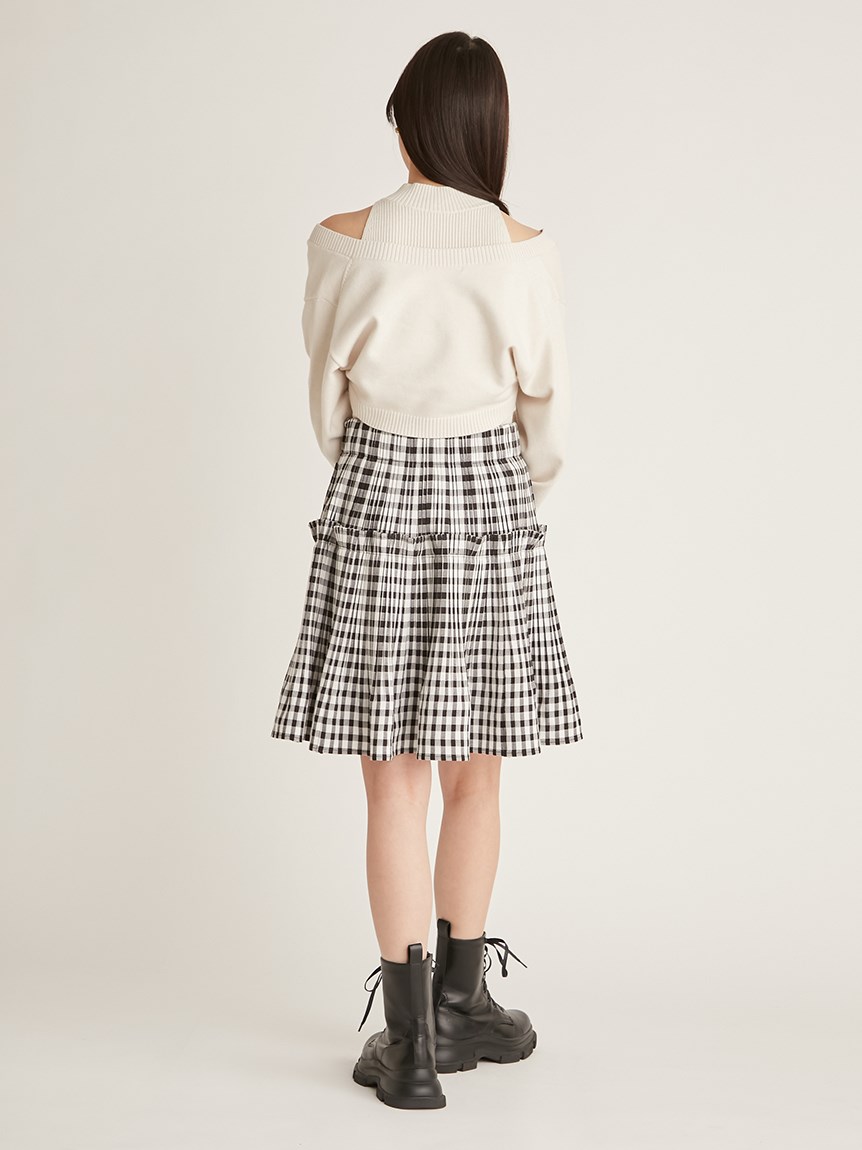 きれいめな質感のニットとリブニットを組み合わせました。淡い色合いがフェミニンなホワイト、ラメが入った、ベージュ、ピンクベージュの3色展開でお届けします。