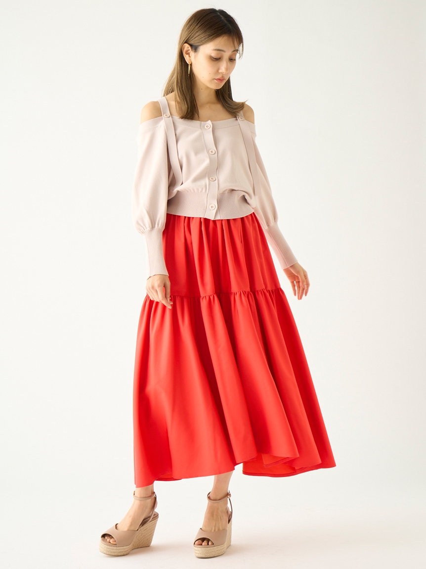ストラップをあしらいデコルテと肩を大胆に肌見せした、トレンドライクなニットプルオーバー。カーディガン風のディテールとのMIXデザインが新鮮で、他にはない「SNIDEL」ならではの1着です。袖口と裾をリブ編みで切り替えることでメリハリ感をプラス。パンツともスカートとも合わせやすく、着まわしやすい万能アイテムです。