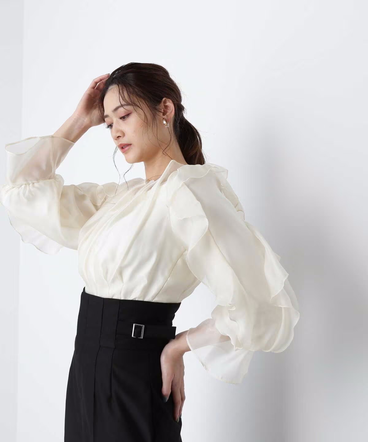 ソフトオーガンラッフルブラウス